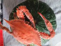 5.加适量的水,把海蟹放进去。海蟹是之前蒸好的,没吃完的放冰箱里了,这次做南瓜汤用上了。。
