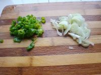 5.葱白煸出香味后,倒入两汤匙的生抽。