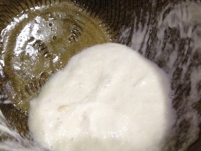 2.再用汤勺反复拍打至起泡,使泥糊变得轻盈有空气