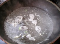 4.水开后下入面,待面熟后把鸡蛋倒入锅内,放入盐,香油,即可出锅。