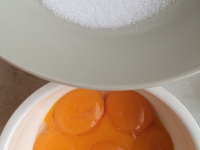 1.蛋黄蛋白分离,蛋黄中加入幼砂糖a。