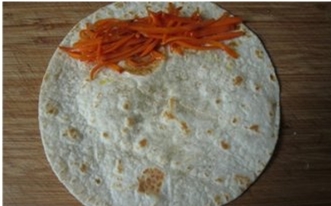9.把胡萝卜丝放入卷饼一边