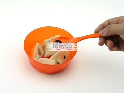 3.用勺子挖出释迦果的果肉,放入碗中,然后去核。